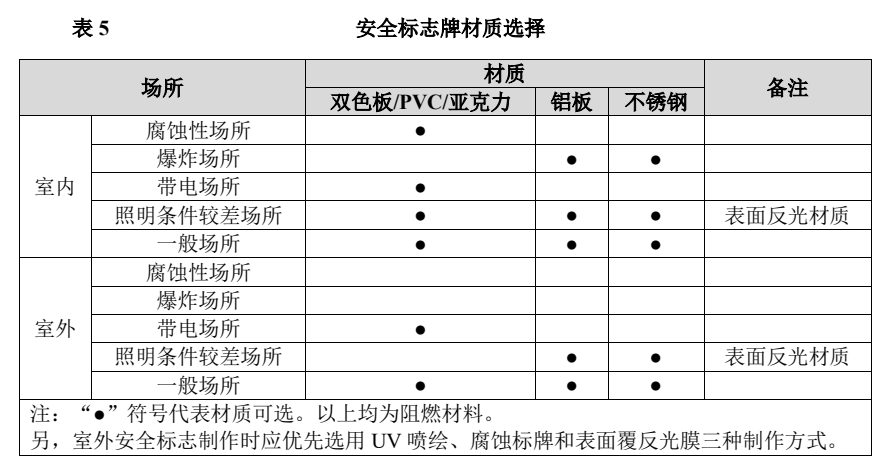 (7) 针对不同区域,安全标志应选取不通材质以适应环境。